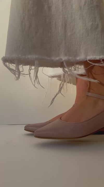 Pointy Mary Janes in plain nude leather with patent toe for any occasion.